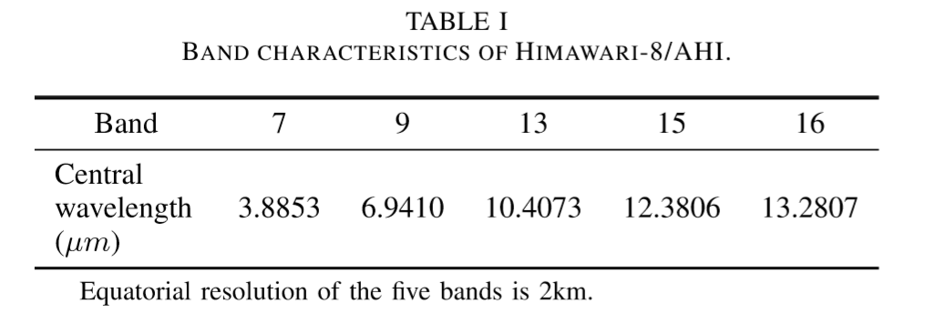 本文利用葵花八号卫星的数据进行实验。在实验中,K(Kappa coefficient)与mIoU(mean intersection over union)作为实验结果的评定指标。