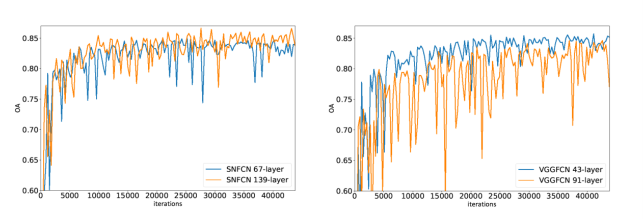 - 我们设计了SNFCN与SDFCN两个基于密集对称连接结构(dense-shortcut connection structures)的语义分割框架,取得了比传统模型更高的总体分类精度(OA);
